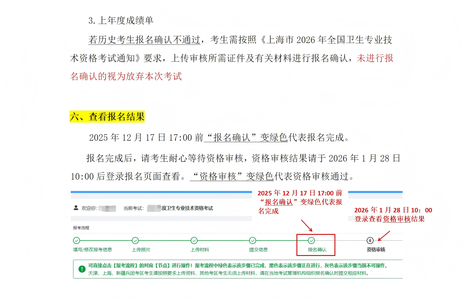 2026年卫生专业技术资格考试考生报名 线上报名确认方式操作指导 (上海考区)
