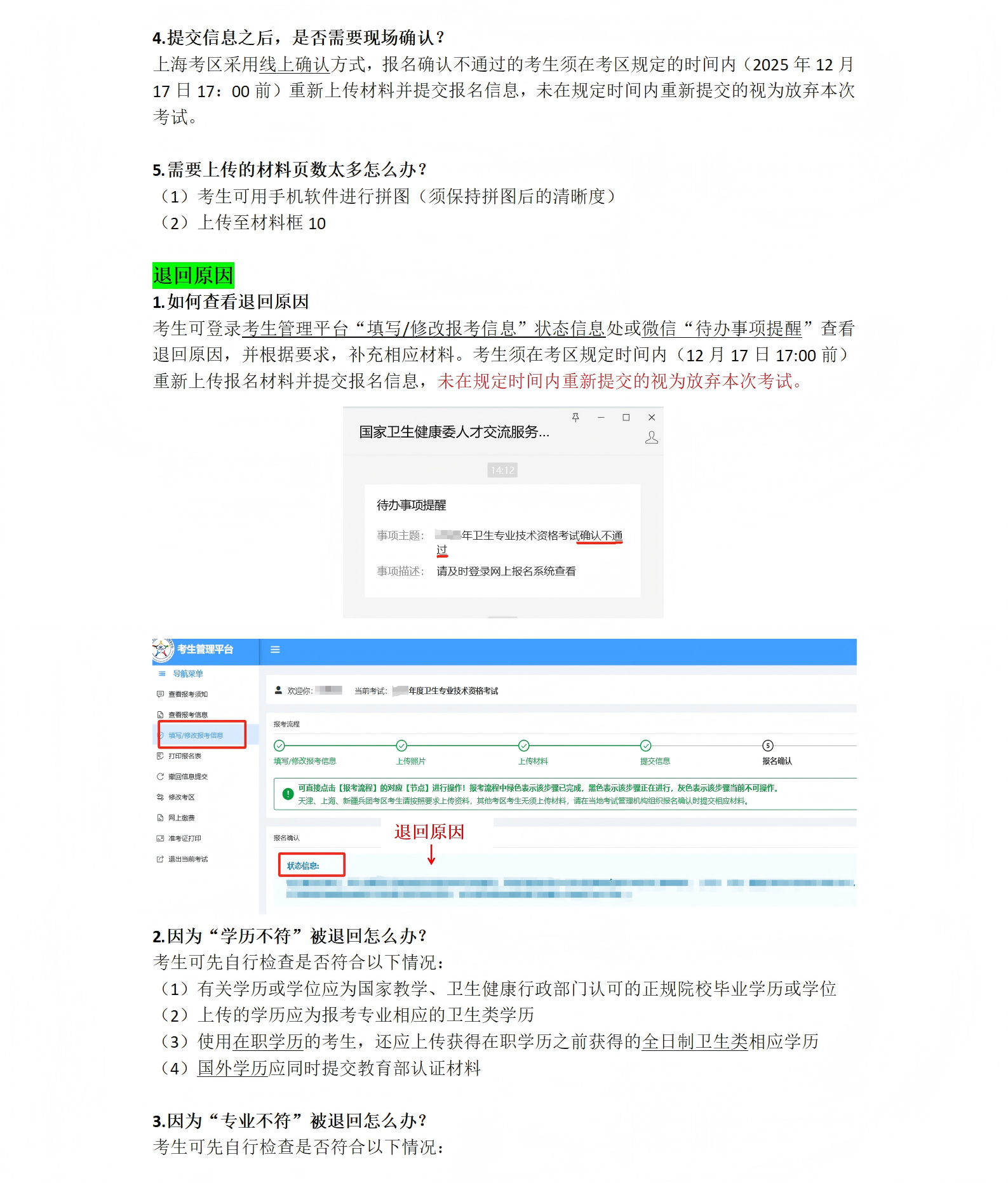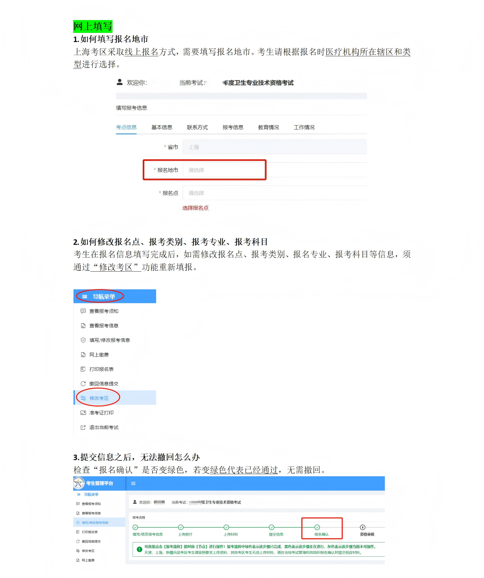 卫生专业技术资格考试线上报名常见问题Q&A(上海考区)