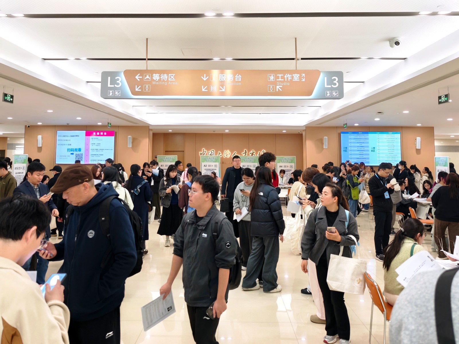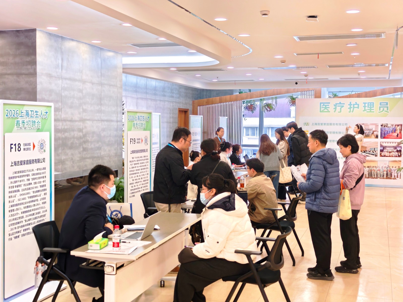 本次共有119家医疗卫生机构参会,共发布1358个职位(其中面向海外人才职位287个),计划招聘3438人。现场入场求职者逾1500余人,截至当天12点共投递线上简历7800人次。本次招聘会特设急救、精神卫生、医疗护理员三大民生服务招聘专区,增设12356心理咨询志愿者招募展位,满足多层次的人才需求。此外,还邀请了同济医院等5家单位开展现场直播,受到广大招聘者的关注。